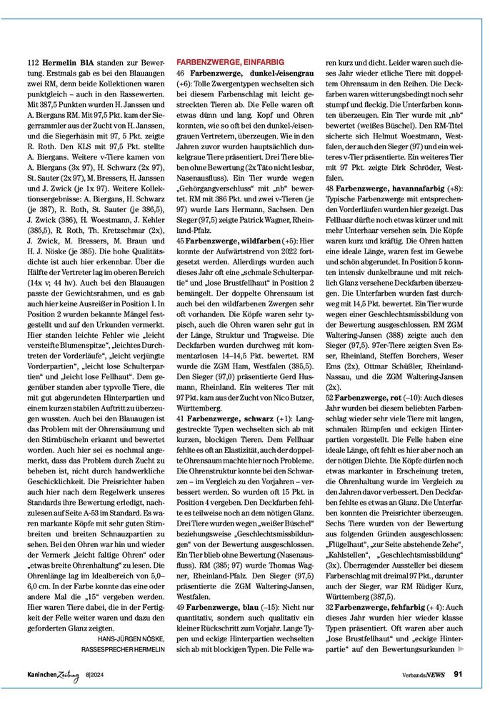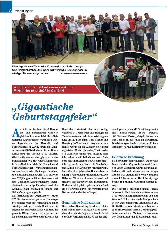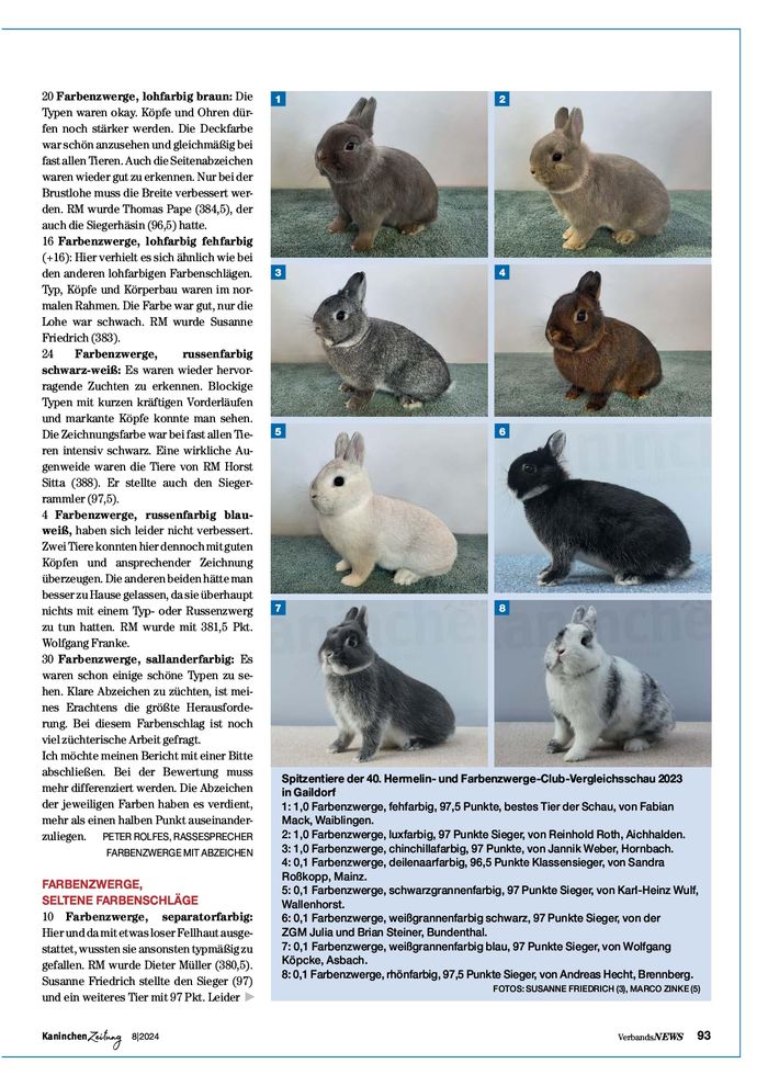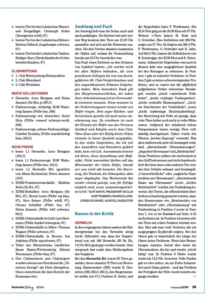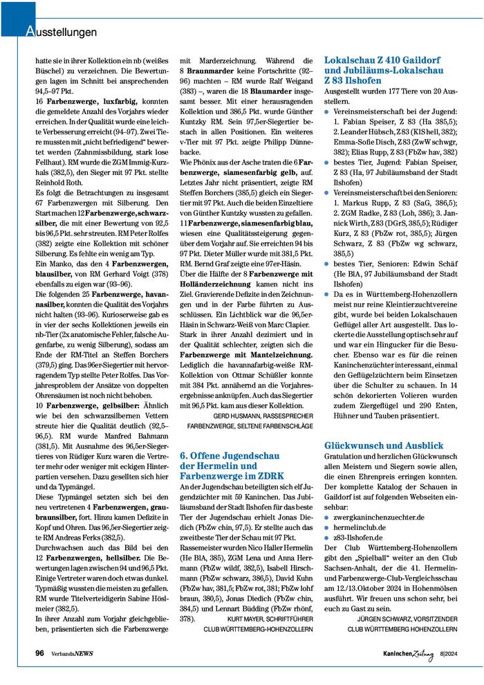 des Hermelin u. Farbenzwergeclubs in Frankenthal, unserer eigenen Clubschau in Aichhalden sowie der Landesschau in Villingen-Schwenningen und der Bundesschau in Kassel, bei denen sehr gute Ergebnisse erzielt wurden.
