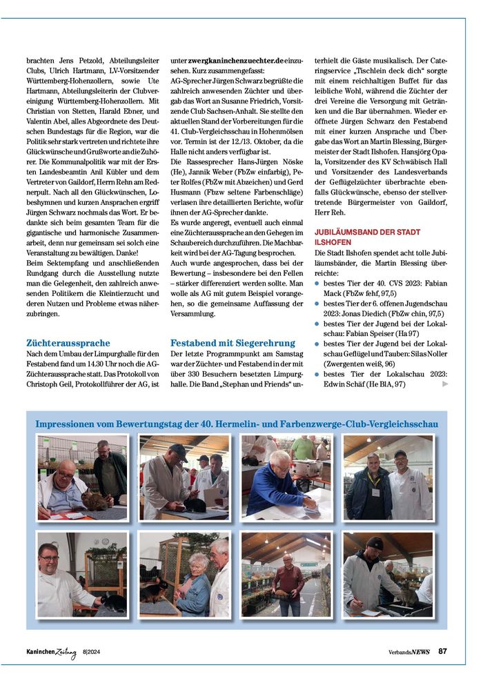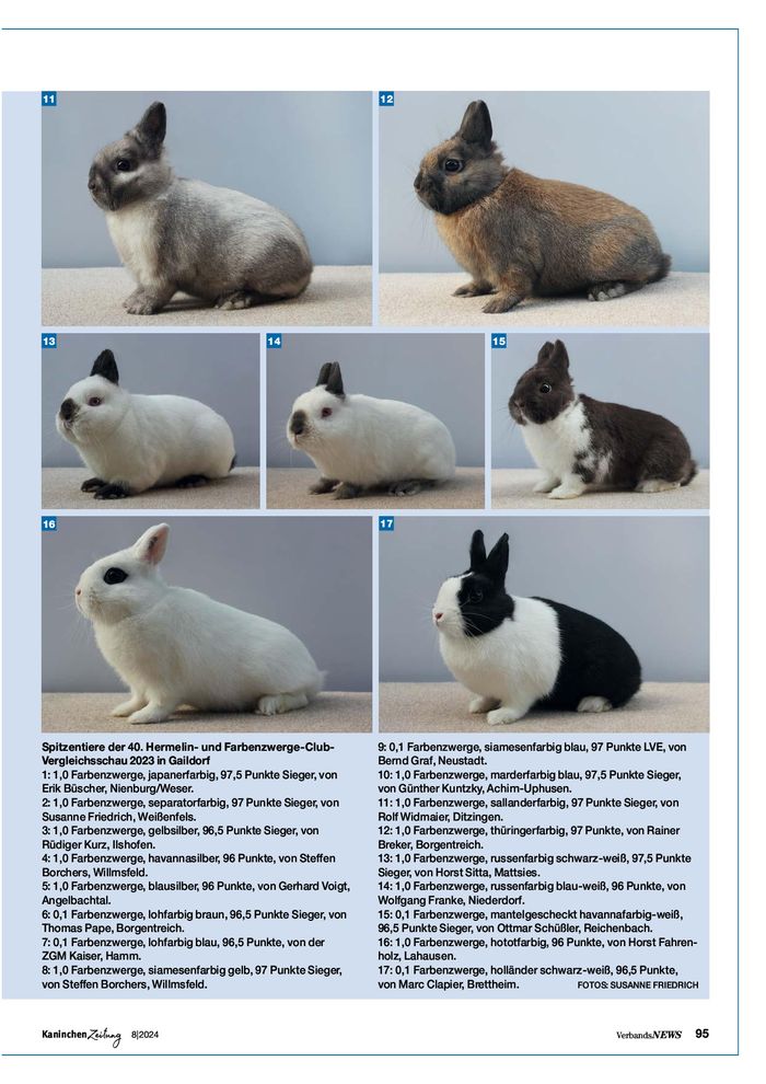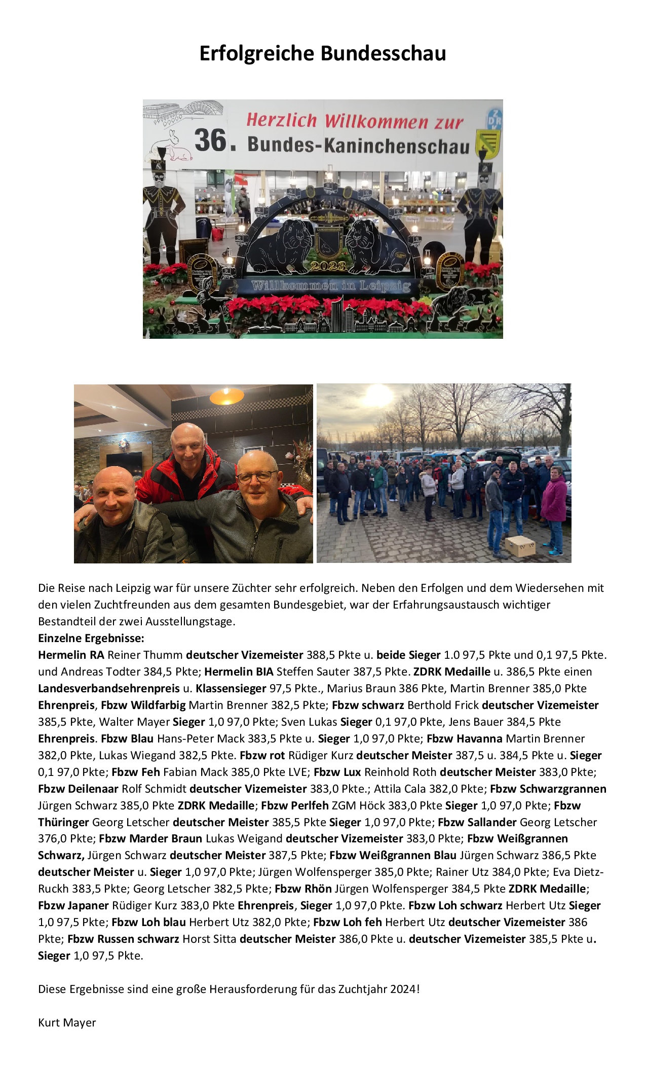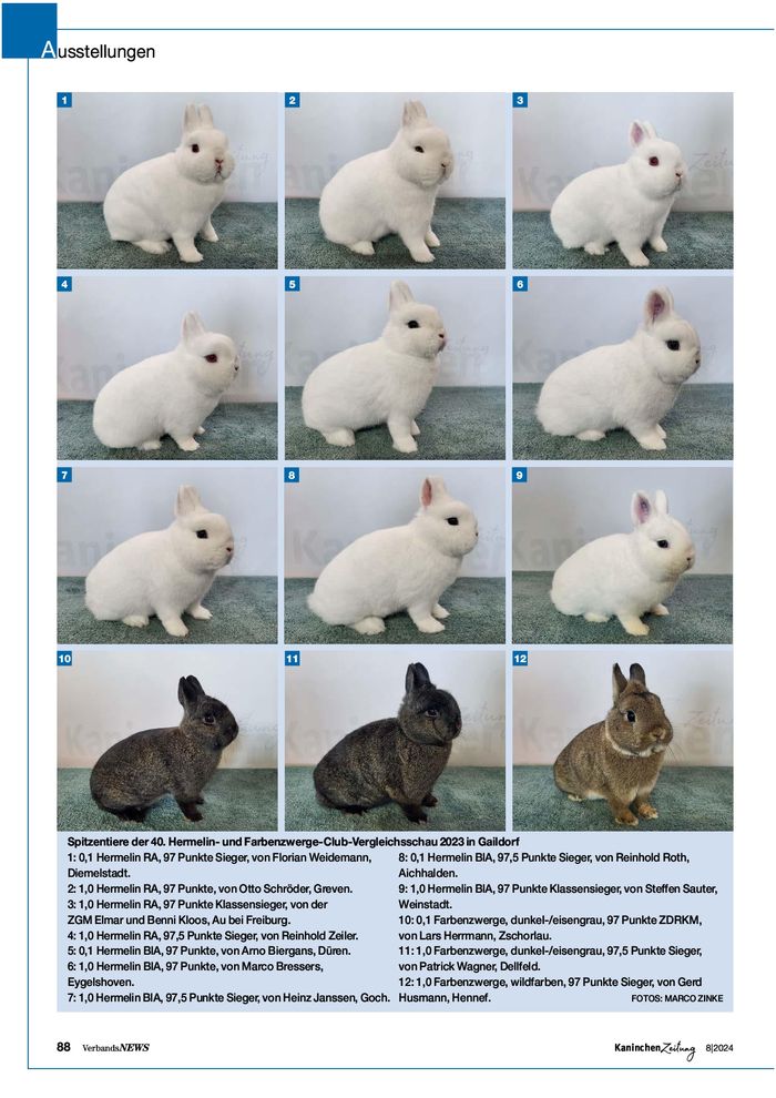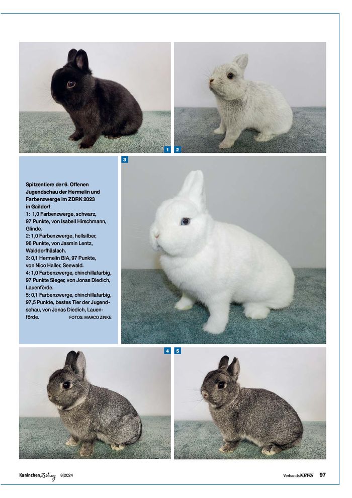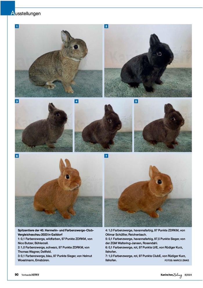 Ebenso wurden die Ausstellungsbestimmungen für die 1. Allgemeine Jugendschau für Hermelin und Farbenzwerge sowie die der ersten Baden-Württemberg Clubschau