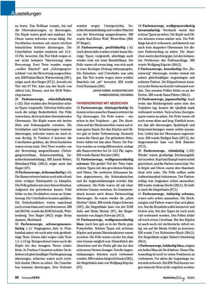 | Farbenzwerge weißgrannenfarbig schwarz | Jürgen Schwarz | 386,5 Punkte |
